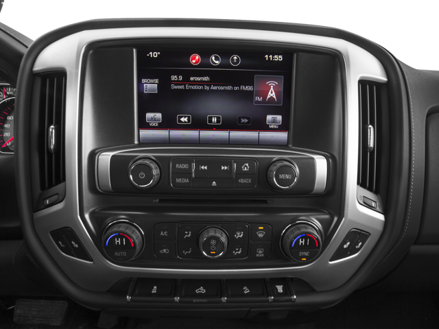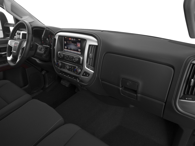 SLE PREFERRED PACKAGE includes (AG1) driver 10-way power seat adjuster when ordered with (AZ3) front 40/20/40 split-bench seat only, (BTV) Remote Vehicle Starter system, (T3U) front fog lamps, (UG1) Universal Home Remote, (C49) rear-window defogger, (N37) manual tilt and telescoping steering column, (KI4) 110-volt power outlet and (CJ2) dual-zone automatic climate control, WHEELS, 18 (45.7 CM) CHROMED ALUMINUM includes 18 x 8 (45.7 cm x 20.3 cm) steel spare wheel. LPO, ASSIST STEPS, CHROMED TUBULAR, 4 ROUND, SLE CONVENIENCE PACKAGE includes (JF4) power-adjustable pedals, (UD7) Rear Park Assist, (A48) sliding rear window, (C49) rear-window defogger, AUDIO SYSTEM, 8 DIAGONAL COLOR TOUCH SCREEN NAVIGATION WITH INTELLILINK, AM/FM/SIRIUSXM WITH USB PORTS auxiliary jack, SD card slot, Bluetooth® streaming audio for music and most phones, hands-free smartphone integration, Pandora Internet radio and voice-activated technology for radio and phone, SUSPENSION PACKAGE, OFF-ROAD: includes Z71 chrome front fender emblems, twin tube Rancho brand shocks, (JHD) Hill Descent Control, (NZZ) underbody shield and Off-Road Driver Information Center graphics, LPO, BED LINER, SEAT ADJUSTER, DRIVER 10-WAY POWER, REAR PARK ASSIST, ULTRASONIC, SEATING, HEATED DRIVER AND FRONT PASSENGER, LPO, FRONT AND REAR MOLDED SPLASH GUARDS, BLACK, UNIVERSAL HOME REMOTE, TRANSMISSION, 6-SPEED AUTOMATIC, HEAVY-DUTY, ELECTRONICALLY CONTROLLED with overdrive and tow/haul mode. Includes Cruise Grade Braking and Powertrain Grade Braking (STD), REAR AXLE, 4.10 RATIO, GVWR, 9500 LBS. (4309 KG), REMOTE VEHICLE STARTER SYSTEM, SEATS, FRONT 40/20/40 SPLIT-BENCH, 3-PASSENGER. Includes driver and front passenger recline with outboard head restraints and center fold-down armrest with storage. Includes manually adjustable driver lumbar, lockable storage compartment in seat cushion, and storage pockets. (STD), ENGINE, VORTEC 6.0L VARIABLE VALVE TIMING V8 SFI E85-COMPATIBLE, FLEXFUEL capable of running on unleaded or up to 85% ethanol (360 hp [268.4 kW] @ 5400 rpm, 380 lb-ft of torque [515.0 N-m] @ 4200 rpm) with (E63) fleetside pickup box; (322 hp [240.1 kW] @ 4400 rpm, 380 lb-ft of torque [515.0 N-m] @ 4200 rpm) with (ZW9) pickup box delete (STD), SLE PREFERRED EQUIPMENT GROUP: includes standard equipment. GMC SLE with Onyx Black exterior and Jet Black interior features a 8 Cylinder Engine with 360 HP at 5400 RPM*. Non-Smoker vehicle