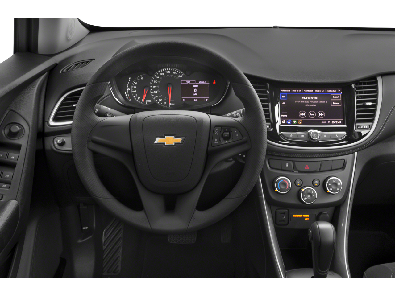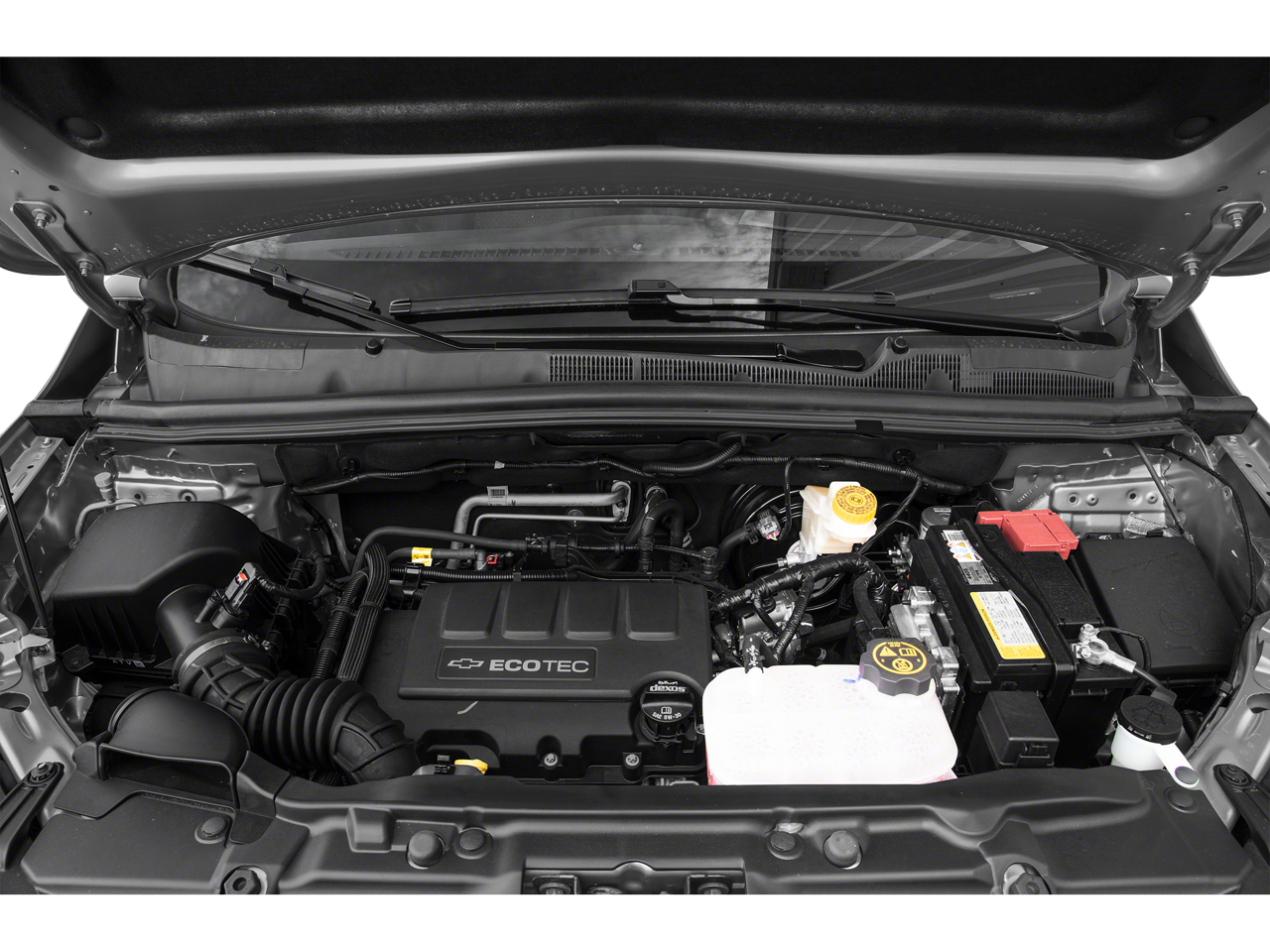AUDIO SYSTEM, CHEVROLET INFOTAINMENT SYSTEM with 7 diagonal color touch-screen, AM/FM stereo voice pass-through technology, includes Bluetooth® streaming audio for music and select phones; featuring Android Auto and Apple CarPlay capability for compatible phone (STD), ENGINE, ECOTEC TURBO 1.4L VARIABLE VALVE TIMING DOHC 4-CYLINDER SEQUENTIAL MFI (138 hp [102.9 kW] @ 4900 rpm, 148 lb-ft of torque [199.8 N-m] @ 1850 rpm) (STD), TRANSMISSION, 6-SPEED AUTOMATIC (STD). Chevrolet LS with Mosaic Black Metallic exterior and Jet Black interior features a 4 Cylinder Engine with 138 HP at 4900 RPM*.