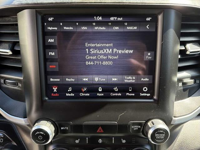 BIG HORN LEVEL 2 EQUIPMENT GROUP Radio: Uconnect 4 w/8.4 Display, Rear Window Defroster, ParkSense Front/Rear Park Assist w/Stop, Rear View Auto Dim Mirror, Power Adjustable Pedals, Rear Power Sliding Window, Rear Dome w/On/Off Switch Lamp, Glove Box Lamp, Power 4-Way Driver Lumbar Adjust, 115V Auxiliary Rear Power Outlet, Power 8-Way Driver Seat, 2 USB Full Function/Charge Only Media Hub, Heated Front Seats, Heated Steering Wheel, Foam Bottle Insert (Door Trim Panel), Class IV Receiver Hitch, Dampened Tailgate, Security Alarm, Black Premium Power Mirrors, Big Horn IP Badge, Remote Start System, SiriusXM Satellite Radio, 400W Inverter, Air Conditioning ATC w/Dual Zone Control, 115V Auxiliary Power Outlet, Universal Garage Door Opener, 2nd Row In Floor Storage Bins, Sun Visors, WHEELS: 20 X 9 ALUMINUM CHROME CLAD (WRK), REMOTE START SYSTEM, TRANSMISSION: 8-SPEED AUTOMATIC (850RE) (STD), ENGINE: 3.6L V6 24V VVT ETORQUE UPG I (STD).