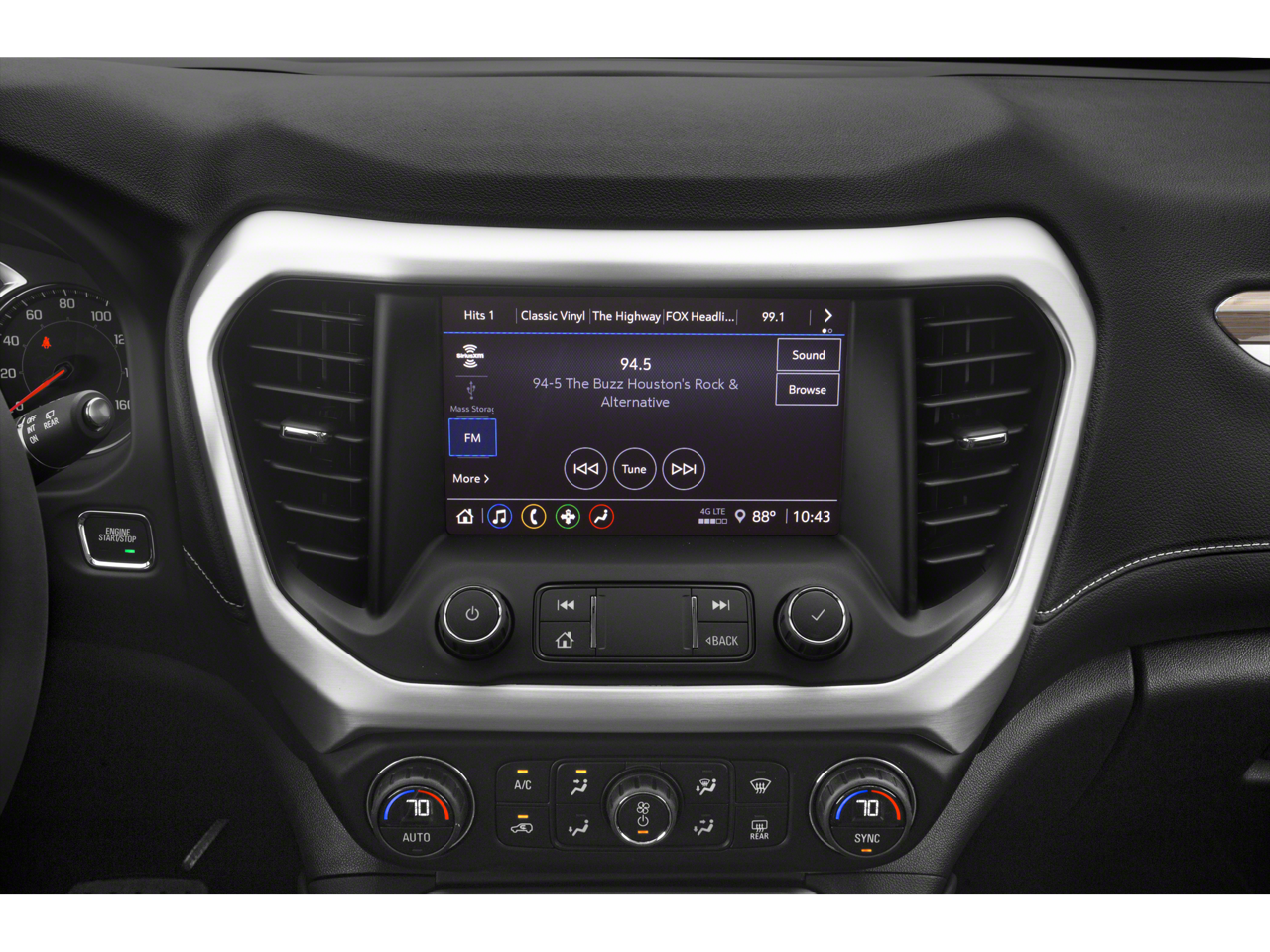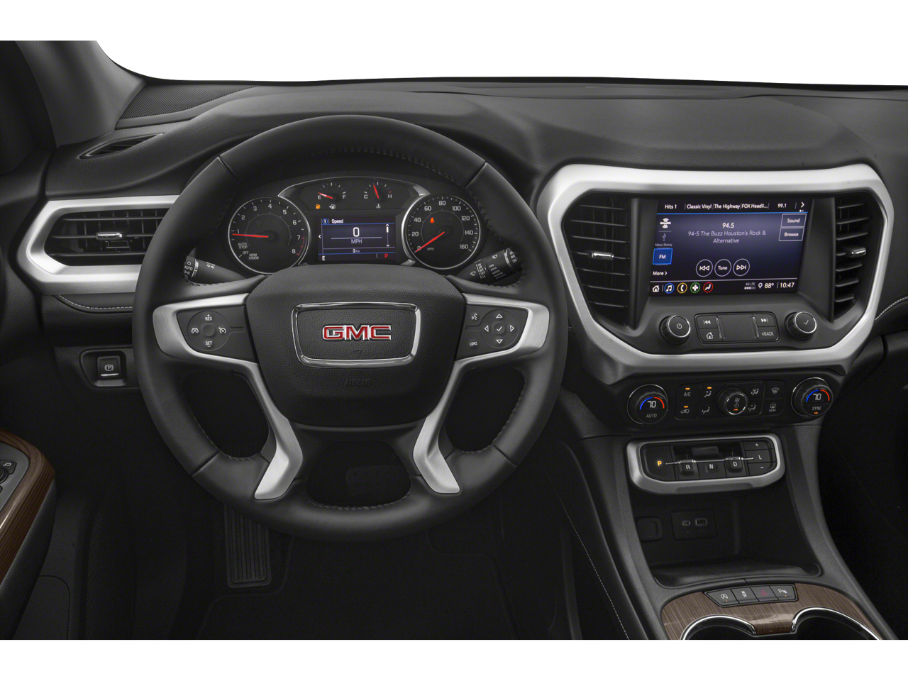 SUNROOF, DUAL SKYSCAPE 2-PANEL POWER with tilt-sliding front and fixed rear with sunscreen, WHEELS, 20 (50.8 CM) MACHINED ALUMINUM WITH DARK ACCENTS, ENGINE, 3.6L V6, SIDI, DOHC with Variable Valve Timing (VVT) (310 hp [231.1 kW] @ 6600 rpm, 271 lb-ft of torque [365.9 N-m]) @ 5000 rpm, 8 DIAGONAL GMC INFOTAINMENT SYSTEM WITH NAVIGATION includes multi-touch display, AM/FM/SiriusXM stereo, Bluetooth® streaming audio for music and most phones, Android Auto and Apple CarPlay capability for compatible phones, advanced voice recognition, in-vehicle apps, personalized profiles for infotainment and vehicle settings (STD), TRANSMISSION, 9-SPEED AUTOMATIC, ELECTRONICALLY-CONTROLLED with 3.6L V6 engine, LUXURY PACKAGE includes (AAB) Memory Package for power driver seat and outside mirrors, (A7K) 8-way power front passenger seat adjuster, (DYX) outside heated power-adjustable power-folding body-color mirrors with driver-side auto-dimming with integrated turn signal indicators, (AT9) power passenger lumbar control, (KU9) heated and ventilated driver and front passenger seats, (KA6) heated rear outboard seats and (N38) power tilt and telescopic steering column.