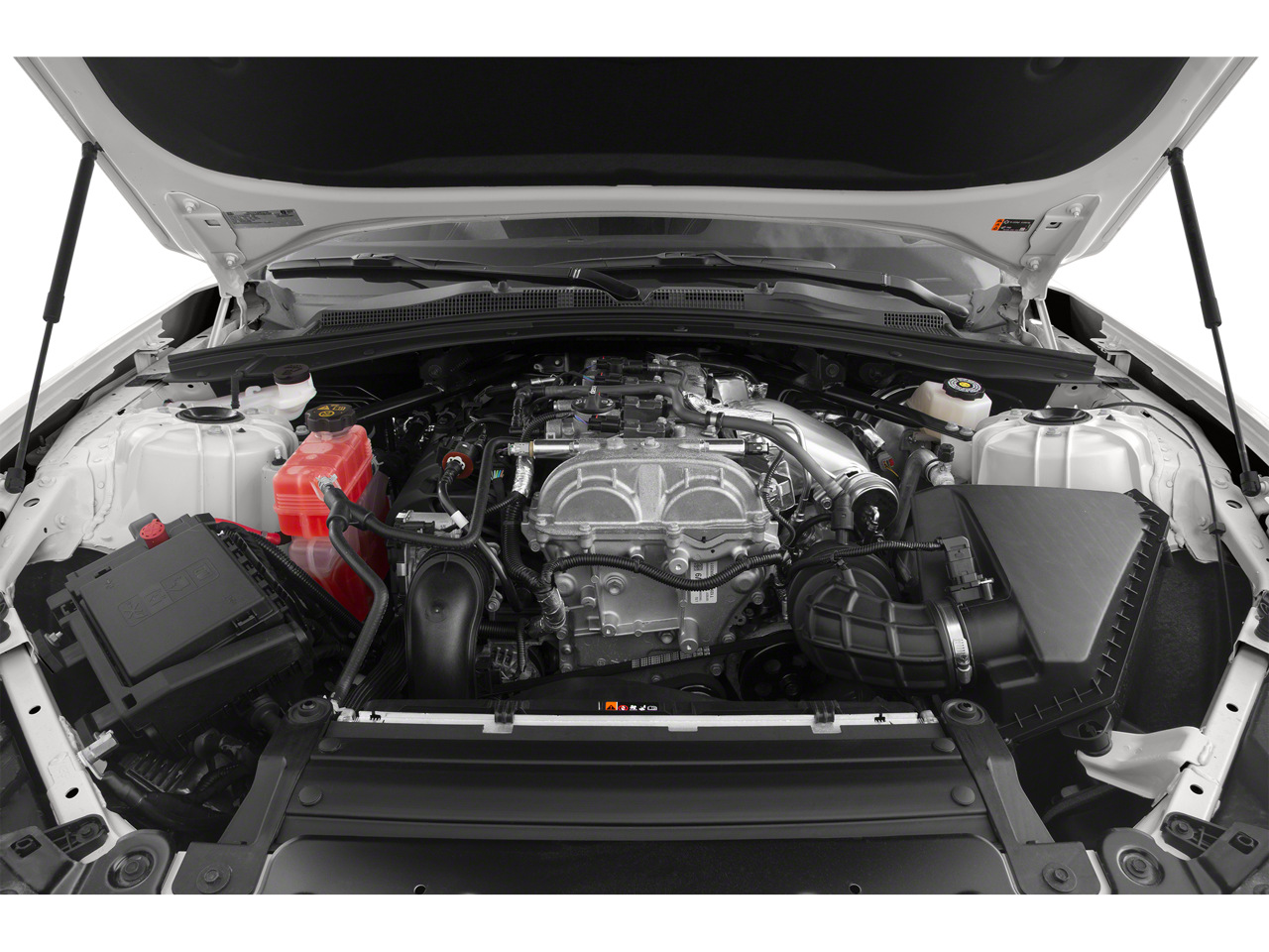 TRANSMISSION, 10-SPEED AUTOMATIC includes transmission oil cooler and (BTV) remote vehicle starter system, WHEELS, 20 (50.8 CM) 5-SPOKE CARBON FLASH PAINTED ALUMINUM, AUDIO SYSTEM, CHEVROLET INFOTAINMENT 3 SYSTEM, 7 DIAGONAL COLOR TOUCHSCREEN, AM/FM STEREO. Additional features for compatible phones include: Bluetooth® audio streaming for 2 active devices, voice command pass-through to phone, Apple CarPlay and Android Auto capable. (STD), ENGINE, 6.2L (376 CI) V8 DI, VVT (455 hp [339.3 kW] @ 6000 rpm, 455 lb-ft of torque [614.3 N-m] @ 4400 rpm) (STD). Chevrolet LT1 with Red Hot exterior and Jet Black interior features a 8 Cylinder Engine with 455 HP at 6000 RPM*.